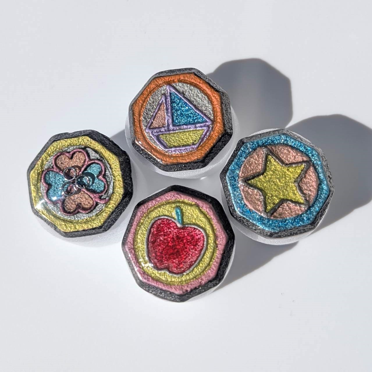 伝統玩具・鋳物の「ベーゴマ」に、ペイントやカラフルなパーツで自由にデコレーション。