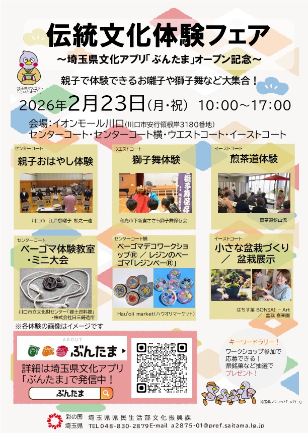 一日でいろいろ楽しめる伝統文化体験フェアをイオンモール川口で開催します!